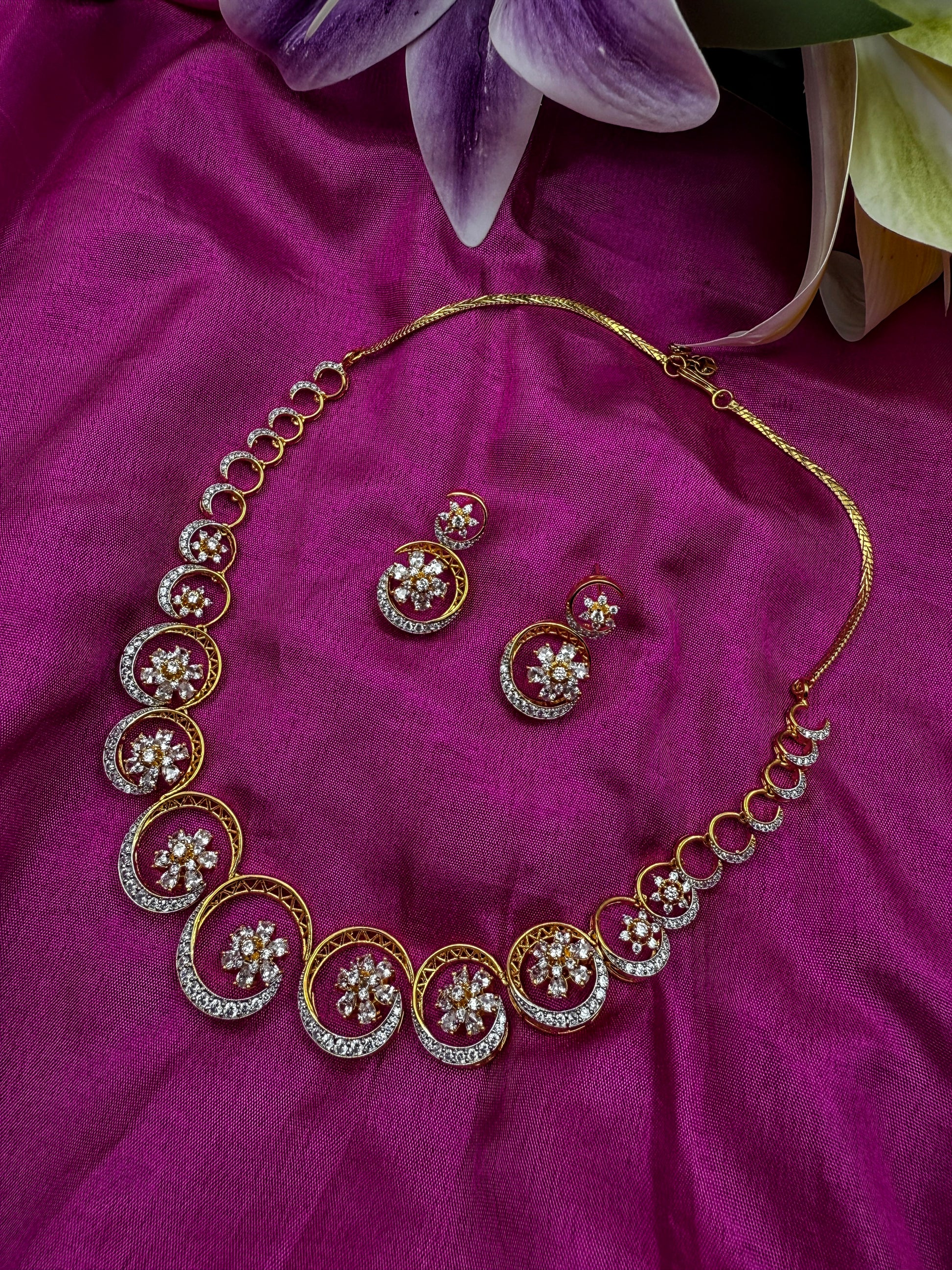 Introducing the exquisite Vionelie Floral Link Set, a premium CZ jewellery set designed for timeless feminine elegance. This charming necklace collection is crafted for you to confidently adorn the spotlight with a look that is delicate, dazzling, and utterly captivating.
