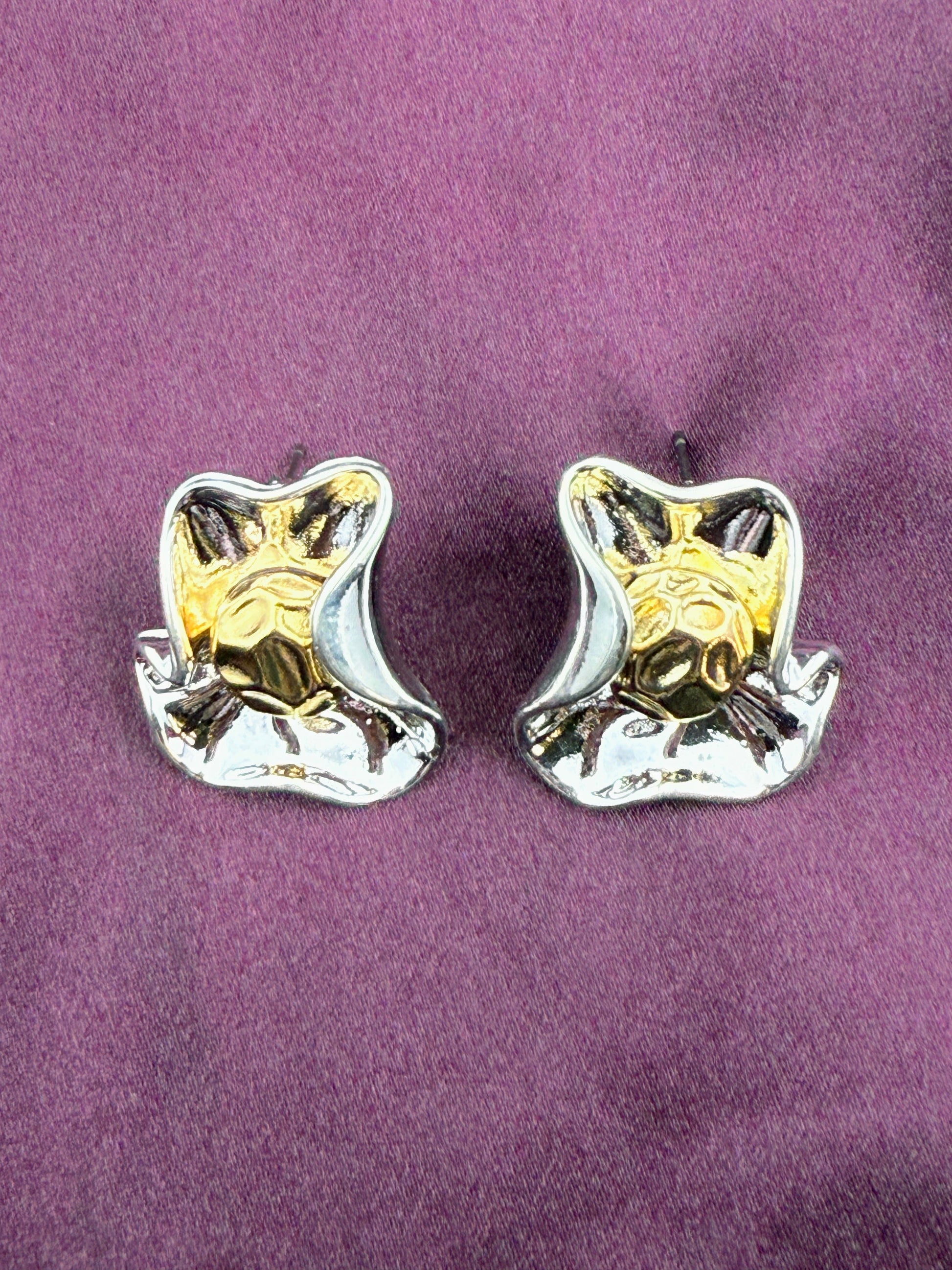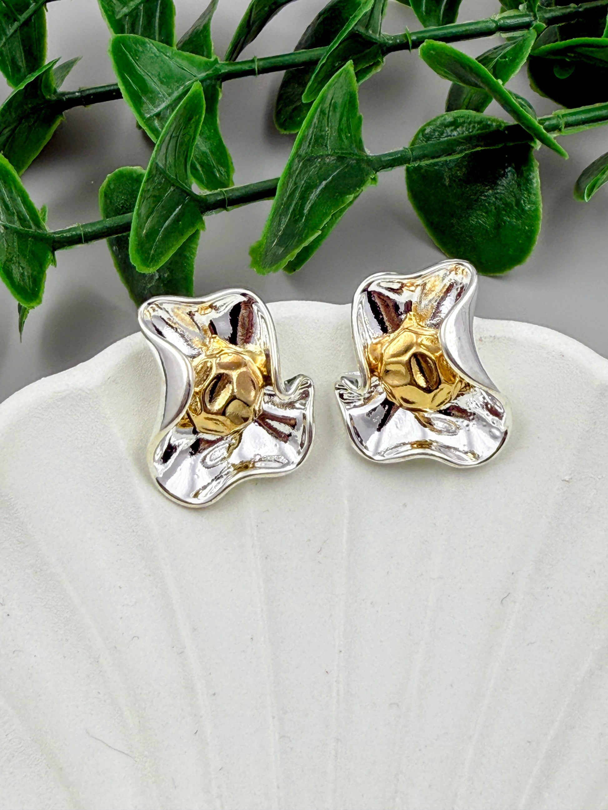 The heart of these earrings is an exquisite dual-toned floral design, featuring sculpted silver petals that cradle a polished golden center. This beautiful contrast creates a captivating, three-dimensional effect that catches the light with every movement. The Rhodia Petal Studs are the perfect choice for adding a touch of contemporary nature-inspired glamour to any outfit, from a professional daytime look to an elegant evening ensemble.
