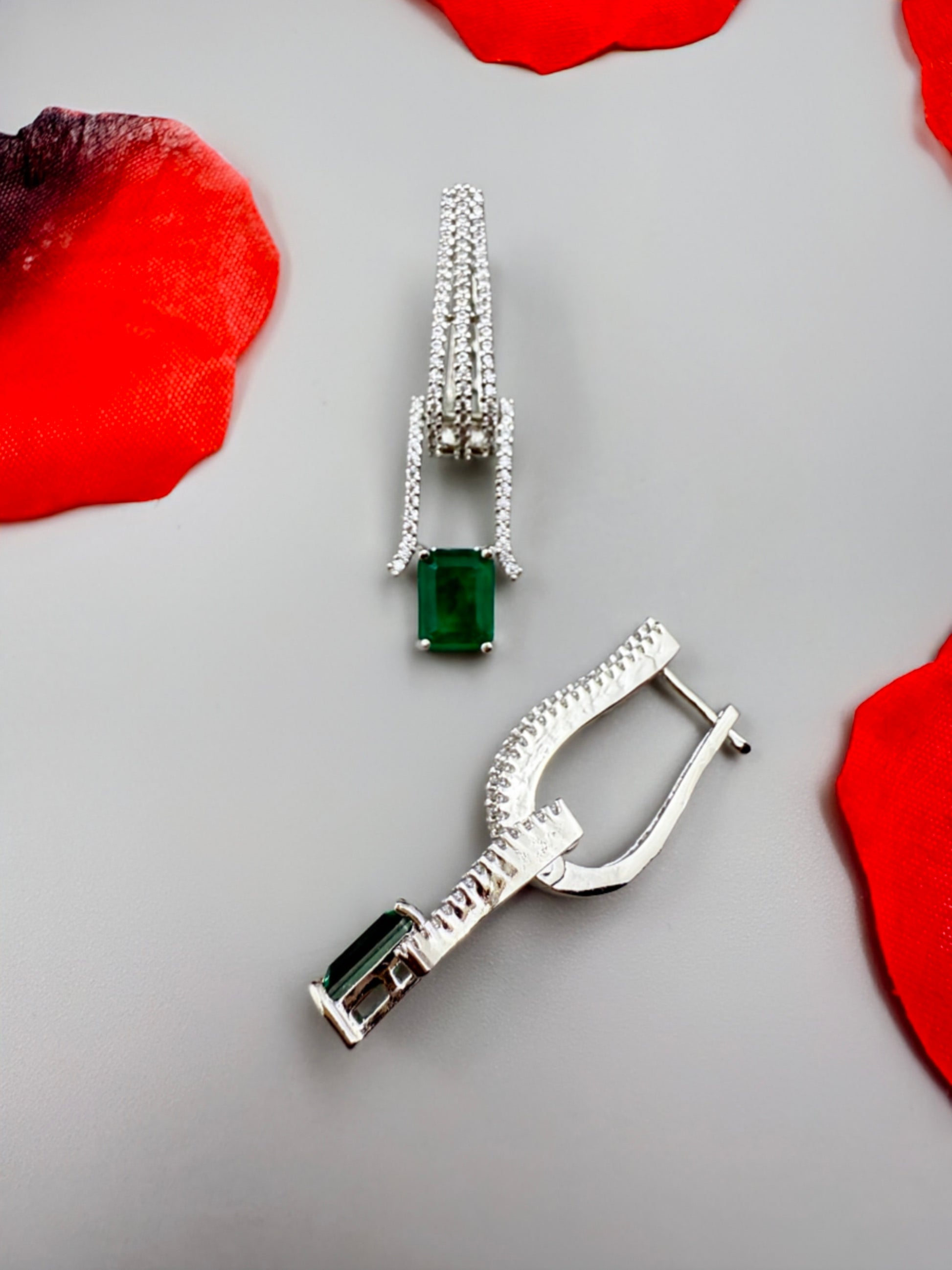The classic hoop design, or "Baali," is given a captivating twist with a vibrant emerald. This rich, green stone adds a touch of luxurious color and timeless elegance, making the earrings a versatile piece that complements both your traditional and fusion wear. The Tarunima Baali is the perfect accessory to add a pop of color and a whisper of charm to any look, ensuring you stand out with grace and style.